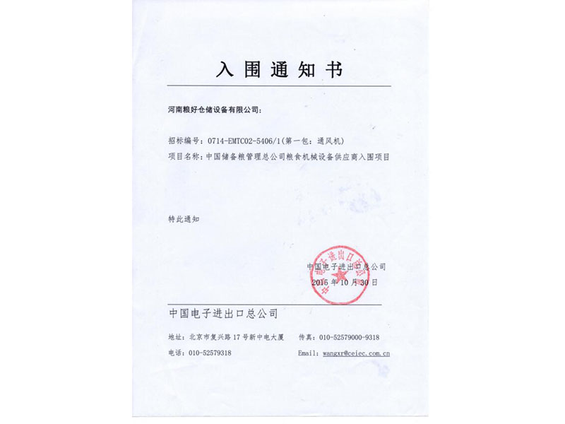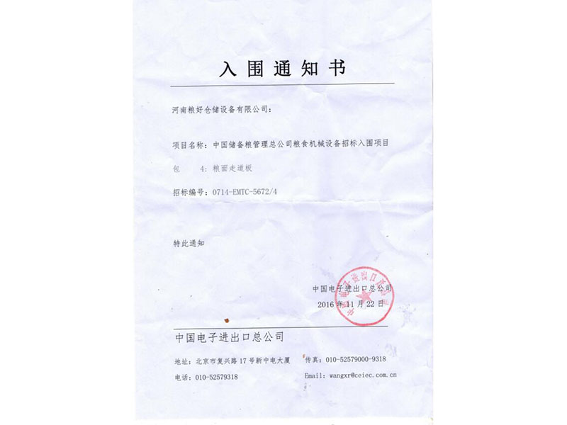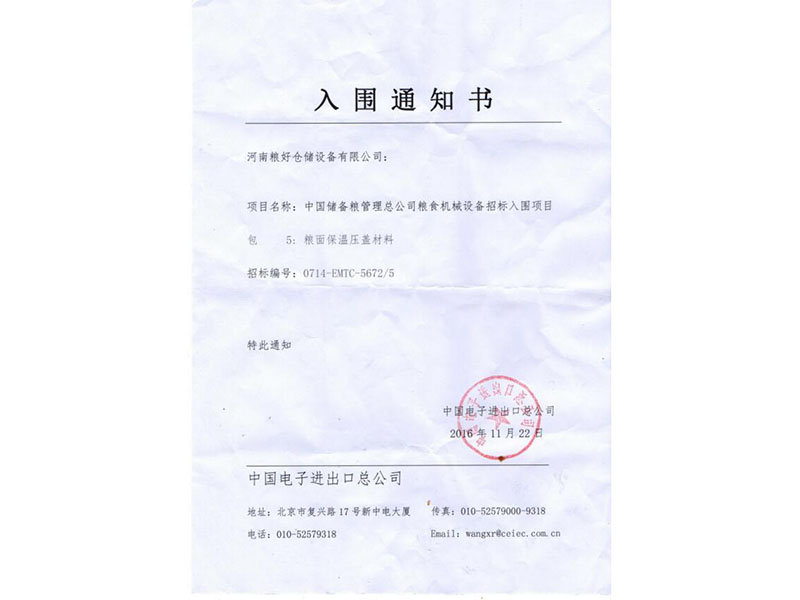 • 中標(biāo)通知書