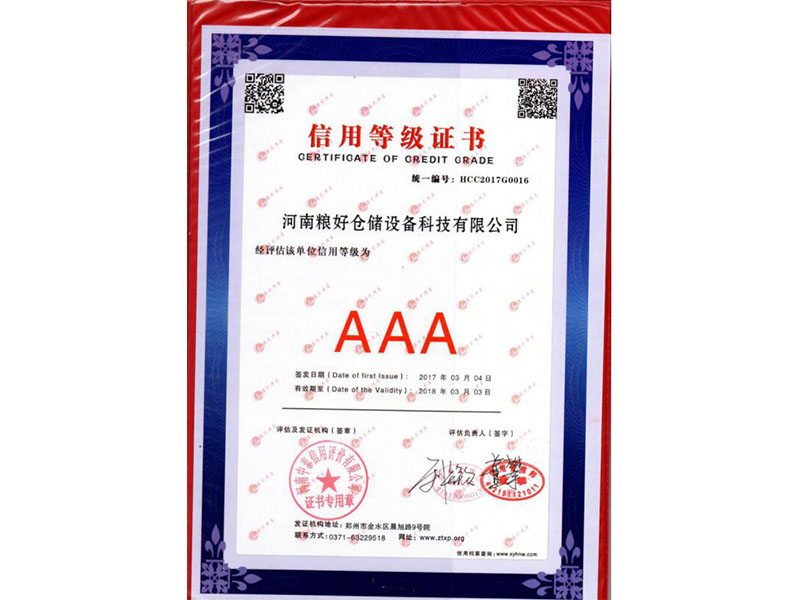 • 信用等級(jí)證書